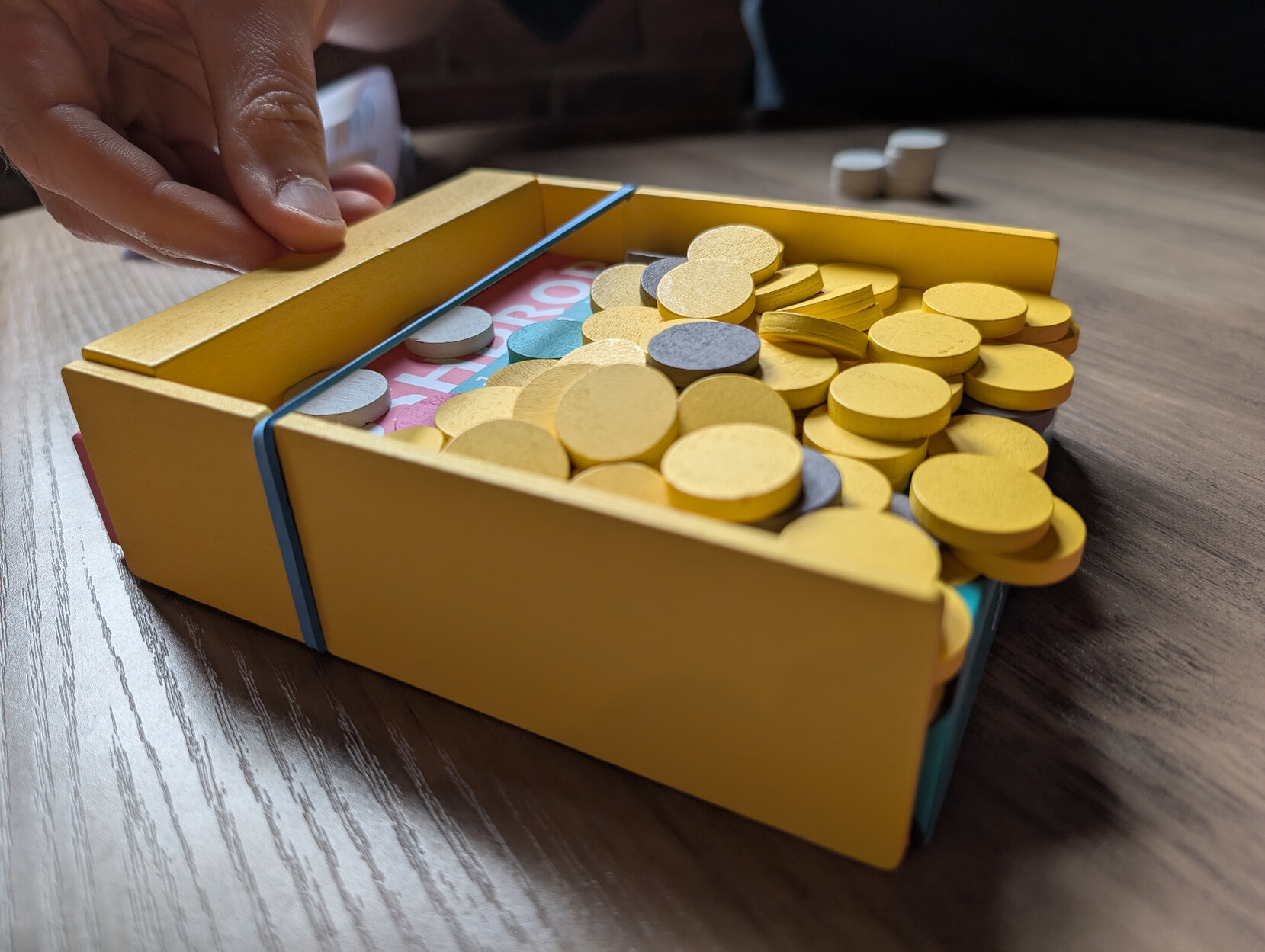 @v Pushdrop uses a couple of little wooden rails and an elastic band to turn the box into a tiny 2p machine. It's a delight!